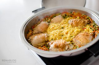 En nuestro Utensilio de 3 litros colocamos el pollo, lo cubrimos con agua y lo dejamos hervir, agregamos sal y debe cocinarse durante 20 minutos. Al final de la preparación, incorporaremos el pollo a la mezcla para terminar su cocción.